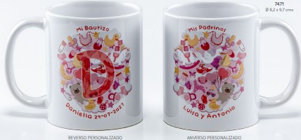 Ref. 7471 Taza inicial personalizada con nombre y fecha PVP. 4,86 € (mínimo 10 u.)
