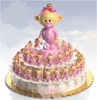 Ref. 8458 Presentación 2 pisos 37 cajitas con bebé chupe rosa con peladillas PVP. 139,66 €