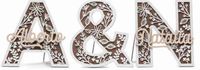 Ref. 7230 Set iniciales madera y metacrilato con nombres madera personalizado con soporte 25 cm PVP. 46,78 €