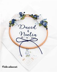 Ref. 7113 Bastidor para alianzas azul bordado personalizado 19 cm. PVP. 29,04 €