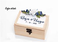 Ref. 7115 Caja madera arras o alianzas con bordado personalizado 10 x 15 x 7 cm. PVP. 19,23 €