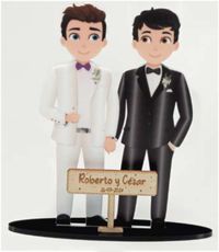 Ref. 7145 Pareja chicos metacrilato personalizado con cartel madera 18 cm. PVP. 21,94 €