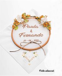 Ref. 7116 Bastidor porta alianzas ocre con bordado personalizado 19 cm. PVP. 29,04 €